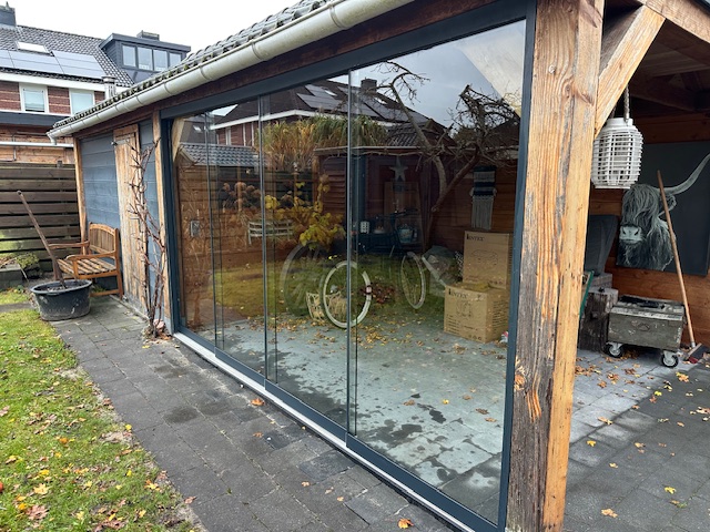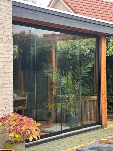 Stijlvol en functionele glaswanden, die perfect passen bij uw overkapping of tuinhuis.